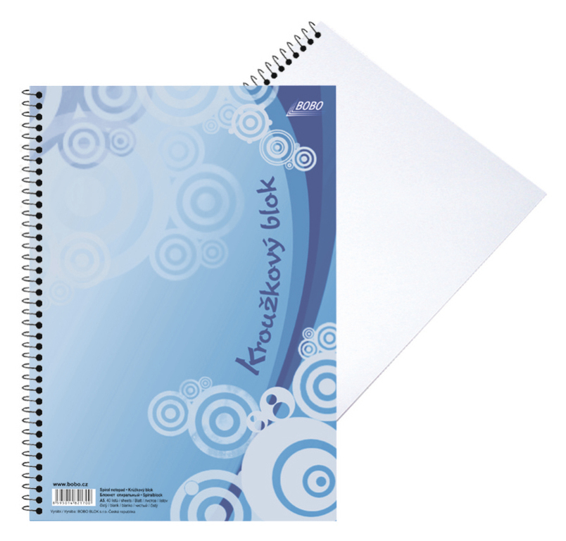 Blok s boční vinutou spirálou, 40 listů. Formát: A5, čistý.