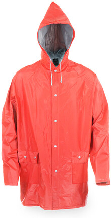 Pláštěnka s kapucí z odolného PVC s žáruvzdornou povrchovou úpravou. Se zapínáním na knoflíky a dvěma předními kapsami.