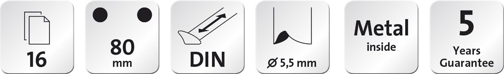 Spolehlivá kancelářská děrovačka pro každý psací stůl. Potištěné posuvné pravítko pro snadné formátování. Dělené výklopné dno z měkké pryže usnadňuje manipulaci s odpadem. Kovový spodní díl a plastový horní díl. Hmotnost: 210 g. Prodloužená záruka: 5 let.