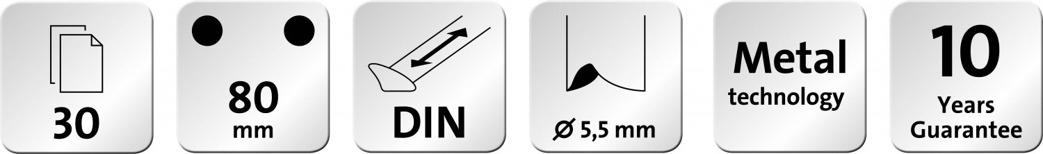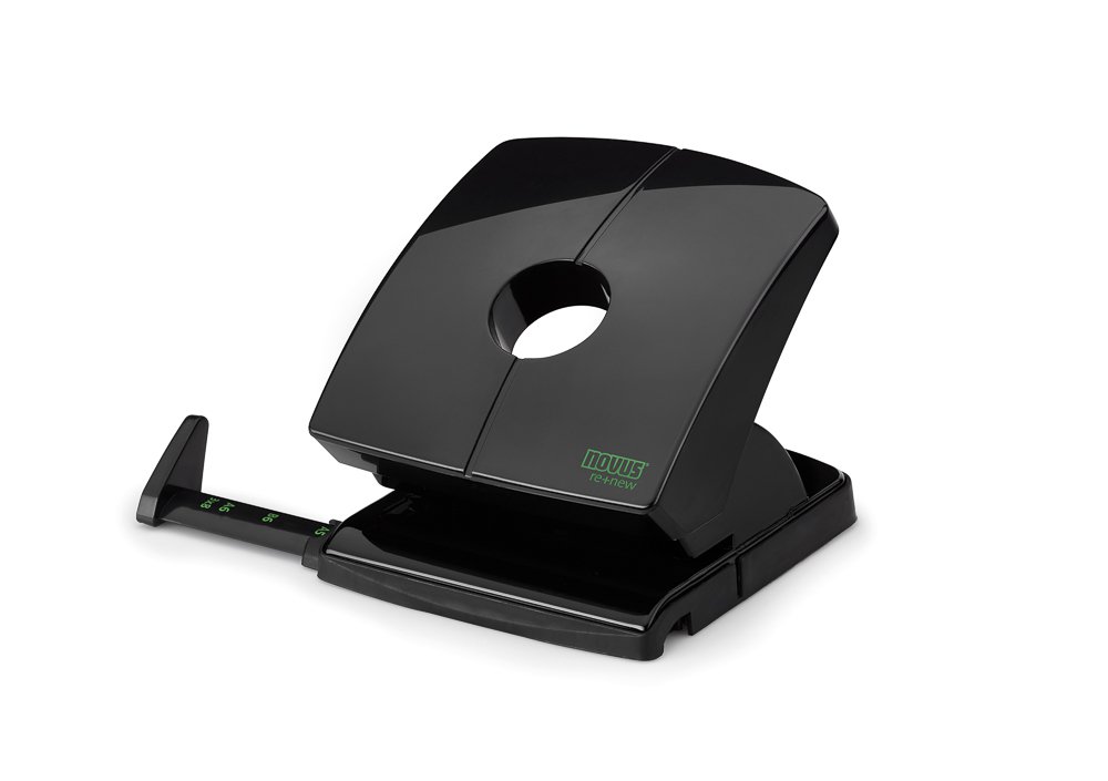 Ekologicky šetrná kancelářská děrovačka pro každodenní profesionální použití. Potištěné posuvné pravítko pro snadné formátování. Dělené výklopné dno z měkké pryže usnadňuje manipulaci s odpadem. Celokovový výrobek s pláštěm z recyklovaného plastu. Rozteč děr 80 mm pro uložení v pořadačích. Hmotnost: 350 g. Prodloužená záruka: 10 let.