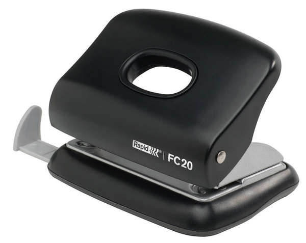 Odolný kovový děrovač s ramenem a základnou z vyztuženého plastu ABS. Pro použití doma, ve škole i v kanceláři. Kapacita: 20 listů. Rozteč otvorů: 7,5 cm. Průměr otvorů: 0,55 cm. Barevné provedení: černé.