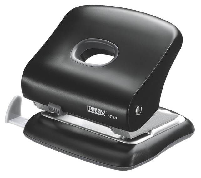 Výkonný odolný kovový děrovač s ramenem a základnou z vyztuženého plastu ABS. Vhodný pro použití doma, ve škole i v kanceláři. Kapacita: 30 listů. Rozteč otvorů: 7,5 cm. Průměr otvorů: 0,55 cm. Barevné provedení: černé.