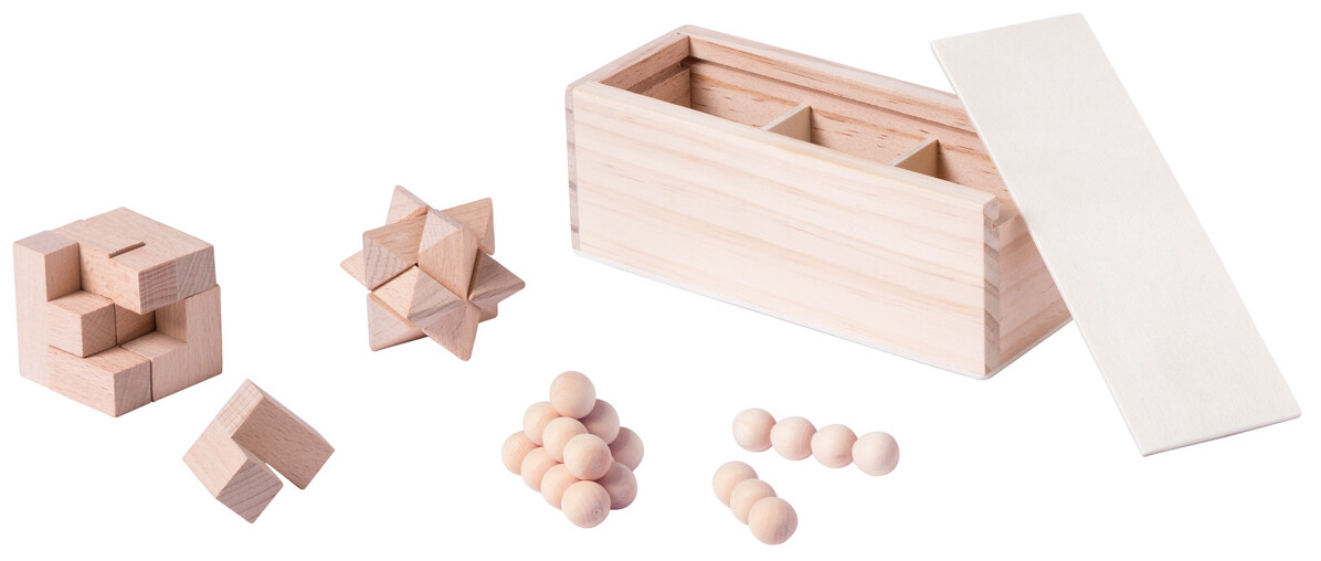 Dřevěné magické puzzle, 3 ks v dřevěné krabičce.