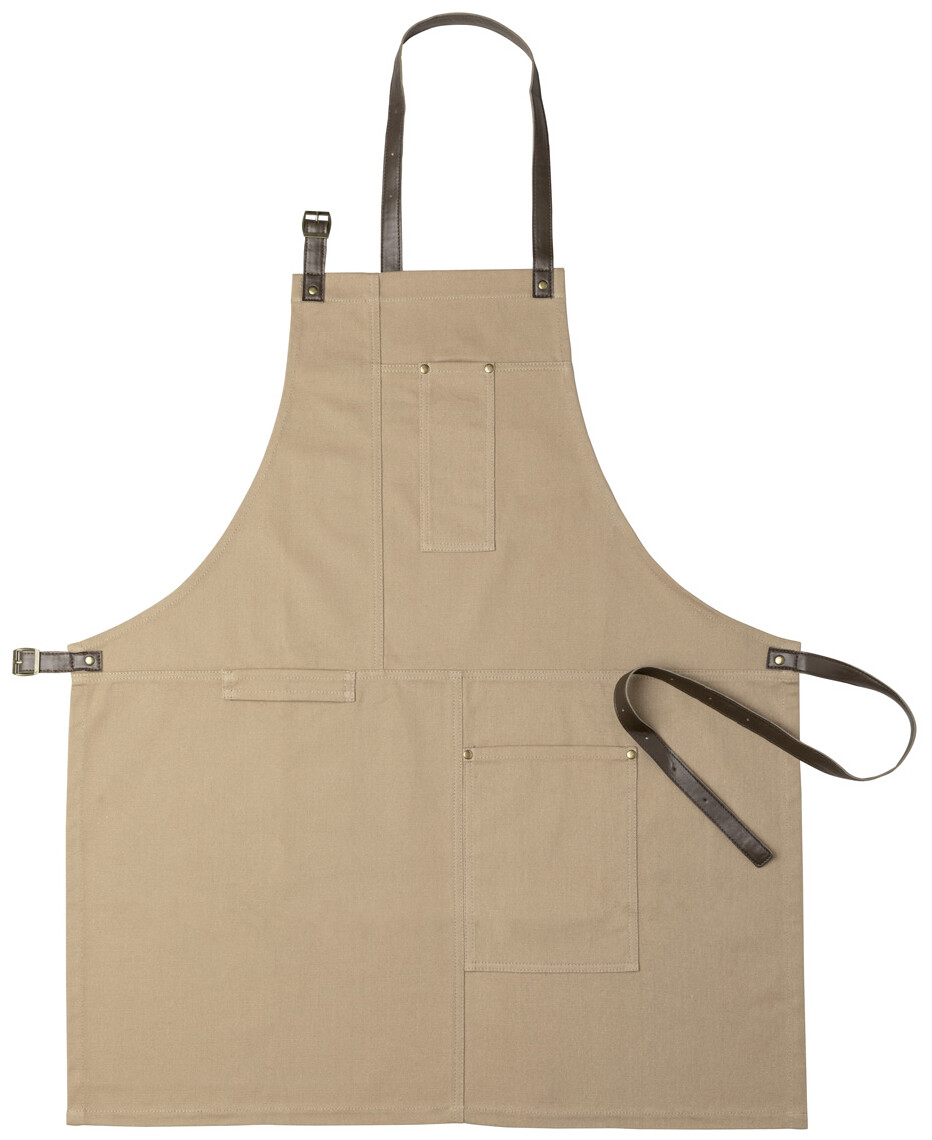 Bavlněná zástěra s předními kapsami a nastavitelnými řemínky z PU kůže, 340 g/m2.