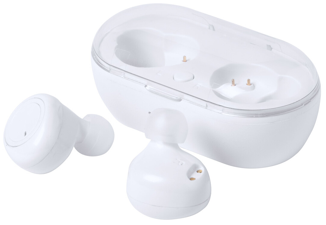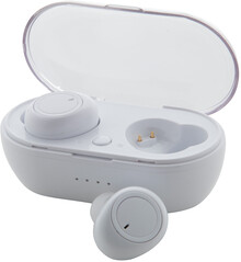 Skutečná bezdrátová stereofonní sluchátka (TWS) s funkcí hands-free volání v plastovém nabíjecím pouzdře. Včetně nabíjecího kabelu USB.
